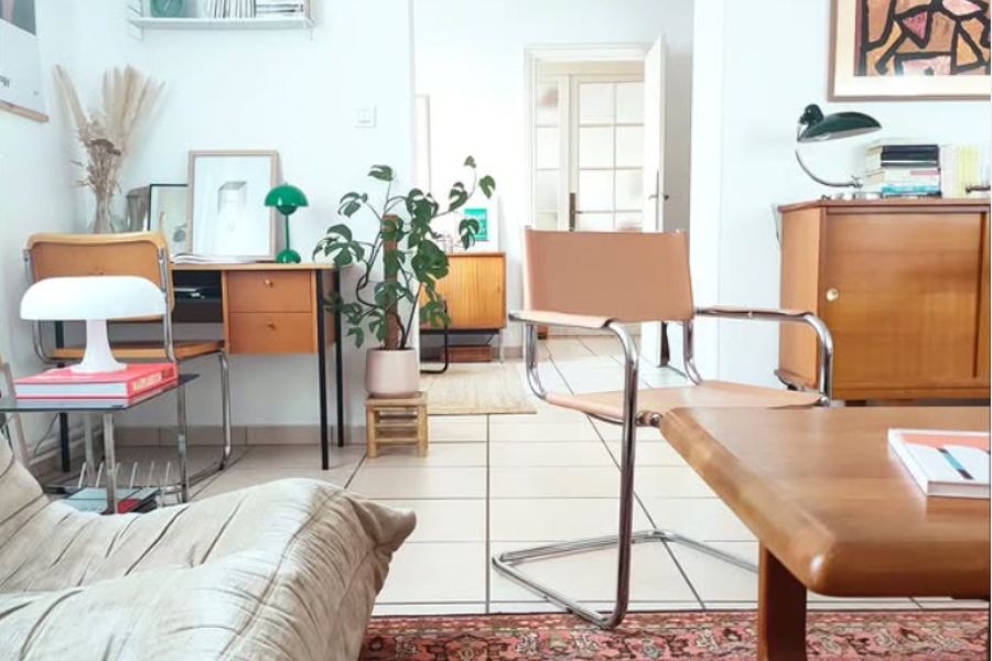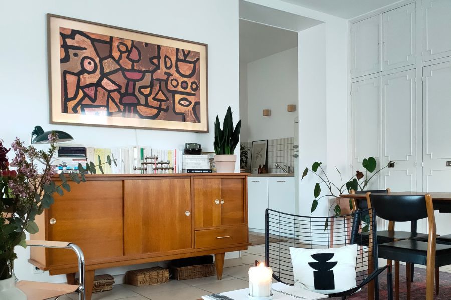 En 2021, je n’avais plus envie d’une télévision dans mon salon. J’aime penser chaque détail déco et l’idée d’avoir un gros écran noir accroché au mur et d’organiser mon salon autour, ça me déprimait. Rien de plus moche qu’un rectangle noir dominant la pièce au-dessus de cette jolie enfilade vintage?